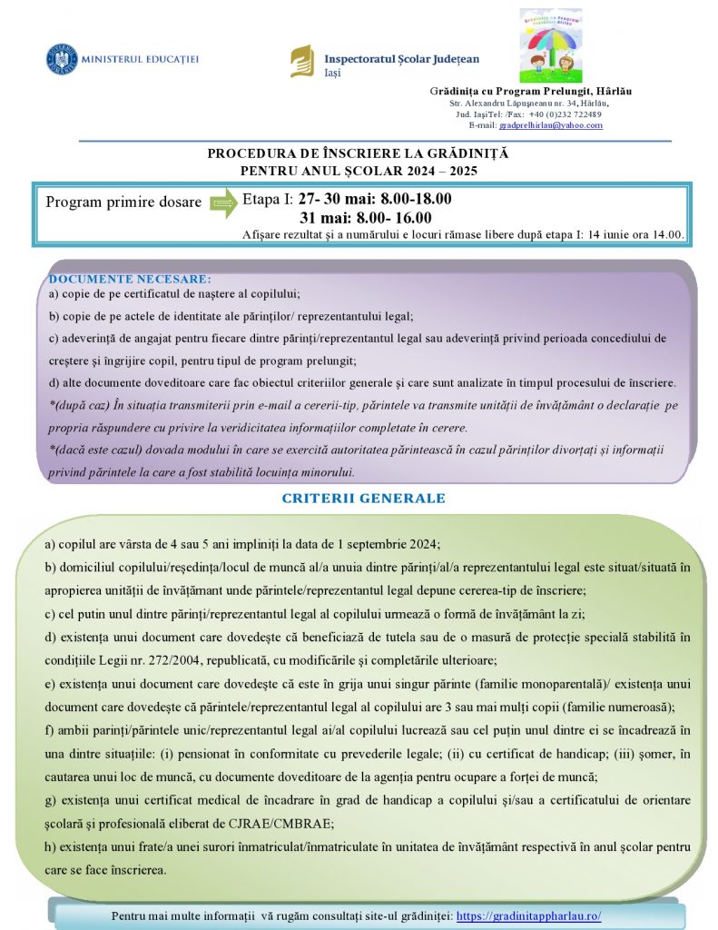 Situație înscriere G.P.P. Hârlău- program normal mică PP